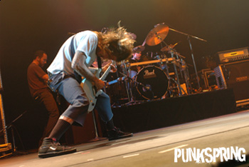 後半、ステージ中央に4台のシンバルとバスドラが用意され、メンバー全員が一体となりドラムの乱れ打ちを披露するシーンはまさに圧巻! その一糸乱れぬドラミングに会場は感嘆の声を上げていた。まさにミクスチャー・サウンドとは何たるものかを、まざまざと見せ付けてくれたステージだった。
