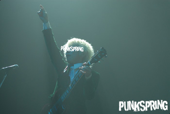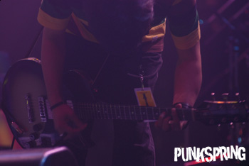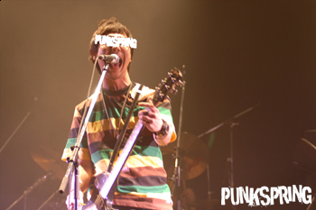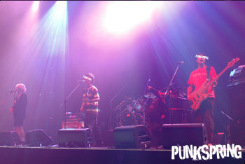 いつの間にか会場は後ろまでびっしり! ステージから後ろが見えないくらいたくさんの人が詰め掛けたBEAT CRUSADERS。オープニング・テーマと同時に謎のお面軍団が大歓声を受け登場、ヒダカの「お○んこたせいたしましたー!!」の掛け声とともにメンバーがお面を外して位置につき「JAPANESE GIRL」からスタートした。メンバーの確固たる素晴らしい演奏から生み出されるノリのよいメロディアスなナンバーが続き、観客はみんな拳を上げダイヴし踊りまくる。もちろん、ビークル名物の「お○んこ」コールも健在(笑)! ヒダカの「オレは千葉出身だ! 千葉ロッテは好きか? バレンタイン監督は好きか?」と呼びかけるトークの面白さに会場も大爆笑で、マーヴィン・ゲイのカヴァー曲から始まり、「HIT IN THE USA」〜新曲「SOLITAIRE」へと続き、ラストの大団円を迎える後半戦の盛り上がりはまさに圧巻だった。