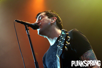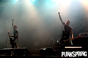 映画『KILL BILL』のテーマ・ソングにのってメンバーが登場し、「ワタシタチハMXPXデス」の一声でライヴがスタート! ヴォーカルのマイクが力強く腕を突き上げのっけから観客を煽り、それに応えるようにオーディエンスも激しくモッシュする。他のメンバーもステージの端から端まで走り回り、マイク・スタンドを高く掲げ、ギターを放り投げたりと激しいパフォーマンスを披露していた。メロディックなパンク・サウンドを得意とする彼らだが、ライヴはとにかくタイト。会場全体を揺るがすラウドなドラムさばきにパンク・キッズ達の興奮はおさまるはずもなく、終盤でもっともファストなナンバーを披露すると会場の全体から合唱が起こり、会場は沸点を超えそれ以上にヒート・アップしていた。