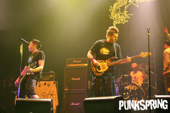 オープニング、暗闇の中に片腕を上げうつむきながら仁王立ちしたグレッグにファンから大歓声が巻き起こる。すぐさまファストでラウドなパンク・サウンドが放たれ、大きな音の塊となってキッズ達を直撃! 会場全体に拳が上がり、この一瞬で会場は早くも沸点寸前となった。それでもメンバー達は速度を緩めることなく、ゴリゴリのスピード・パンク・ナンバーでオーディエンスを煽りまくる。アリが「オマエラサイコー」と言うと、高速ラップでカヴァーしたスパイス・ガールズの「ワナ・ビー」を間髪入れずにプレイ。オープニングからまだ10分程度なのに、そんな振り切れたパフォーマンスを見せるなんてスゴ過ぎ!! お約束の下ネタの後に続く、超高速ラップとメロディアスなサビが融合したゼブラヘッド節炸裂のナンバーでは会場全体がモッシュの嵐となった。ステージ上ではジーンズがずり落ちる程アリが大暴れし、オーディエンスに「F○CK」と言わせ下ネタを盛り込むことを忘れないワルガキっぷりも健在。やっぱり彼らのライヴはこうでなくっちゃ!